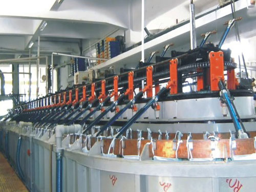 環形垂直升降式電鍍線適用的范圍非常廣泛,主要用于種類多,零件小,產量大,工藝單一的產品,包括塑料電鍍,實現鍍鎳鉻,鍍銅,ABS銅鎳鉻等電鍍要求。